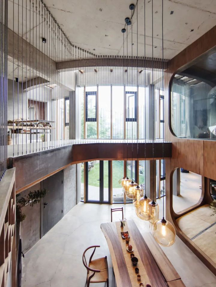 Muốn sống gần gũi thiên nhiên mà vẫn riêng tư, ngôi nhà của Quân Hạo thiết kế bên ngoài là tường không cửa sổ, mặt trong là hai tầng hoàn toàn bằng kính.